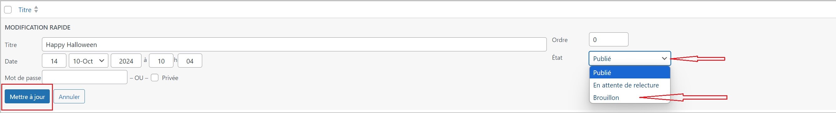 - Sélectionnez "Brouillon" dans le menu déroulant pour dépublier la pop-up.