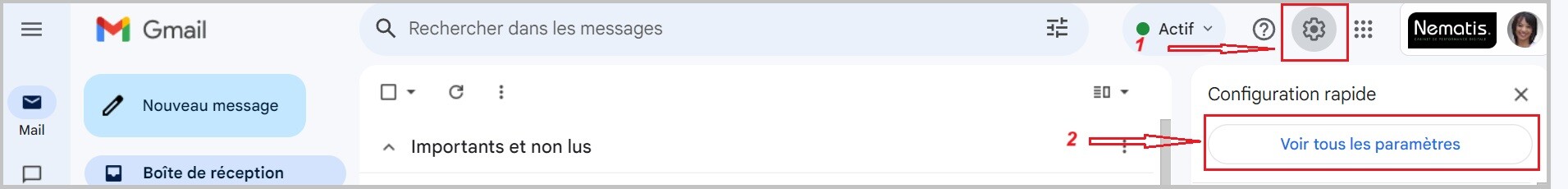 - Cliquez sur l’icône en forme de roue dentée située en haut à droite de l'écran, puis sélectionnez "Voir tous les paramètres"
