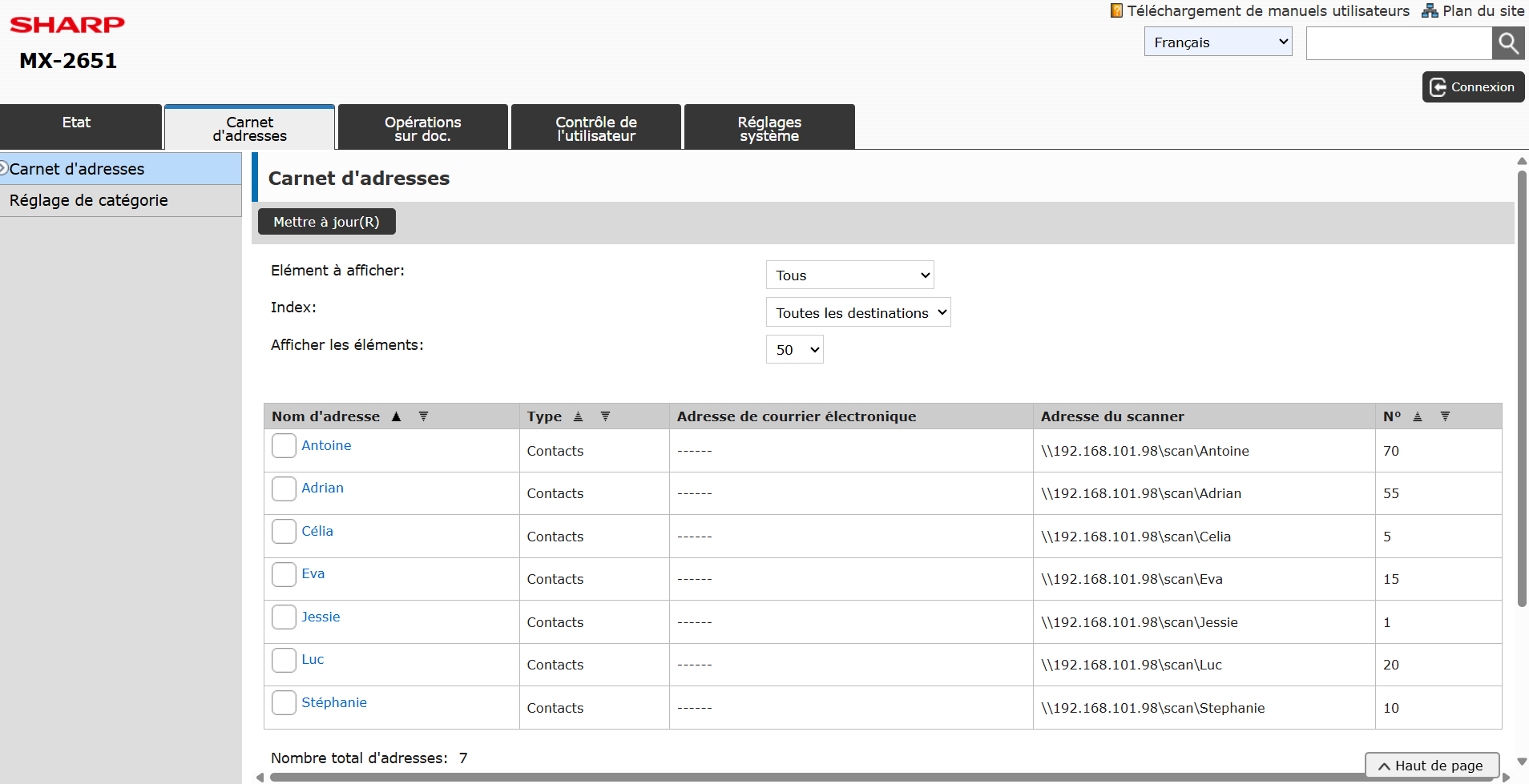 Objectif : Ajouter des contacts dans le carnet d'adresses pour faciliter l'envoi de documents via l'imprimante.