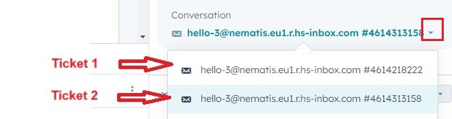 Pour retrouver les tickets fusionnés, rendez-vous en haut à droite dans l'onglet "Conversation" et cliquez sur la flèche. Vous y trouverez tous les tickets qui ont été fusionnés.